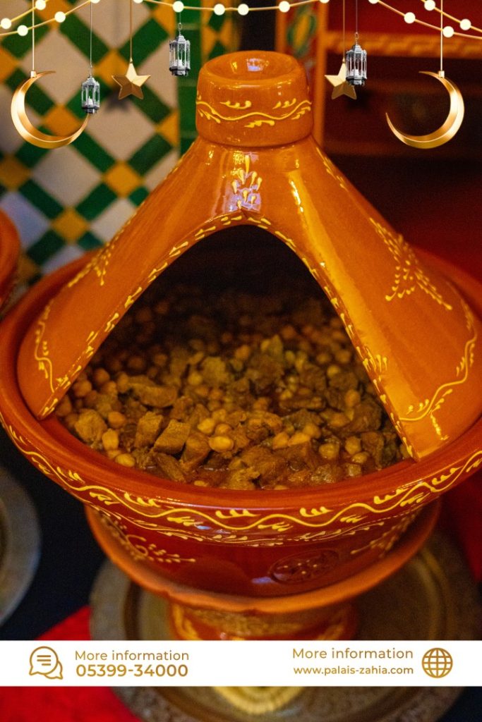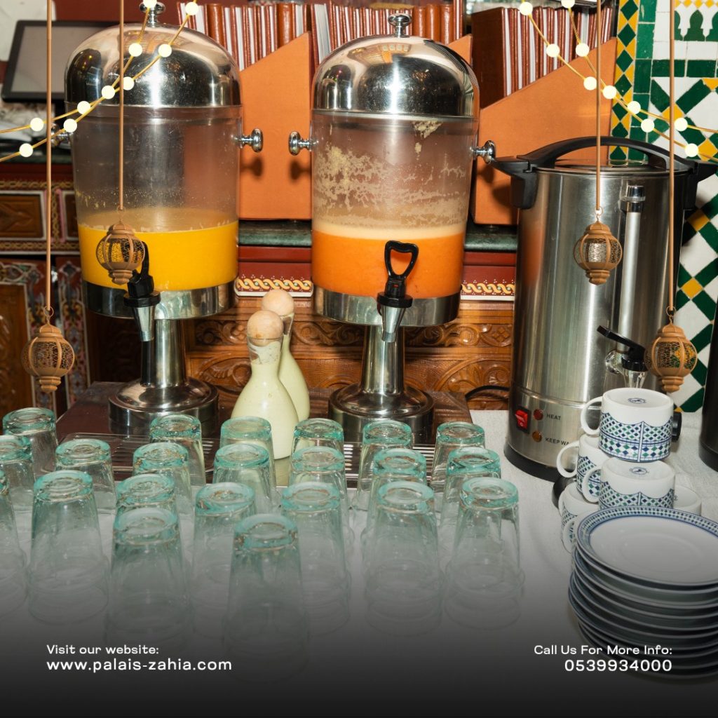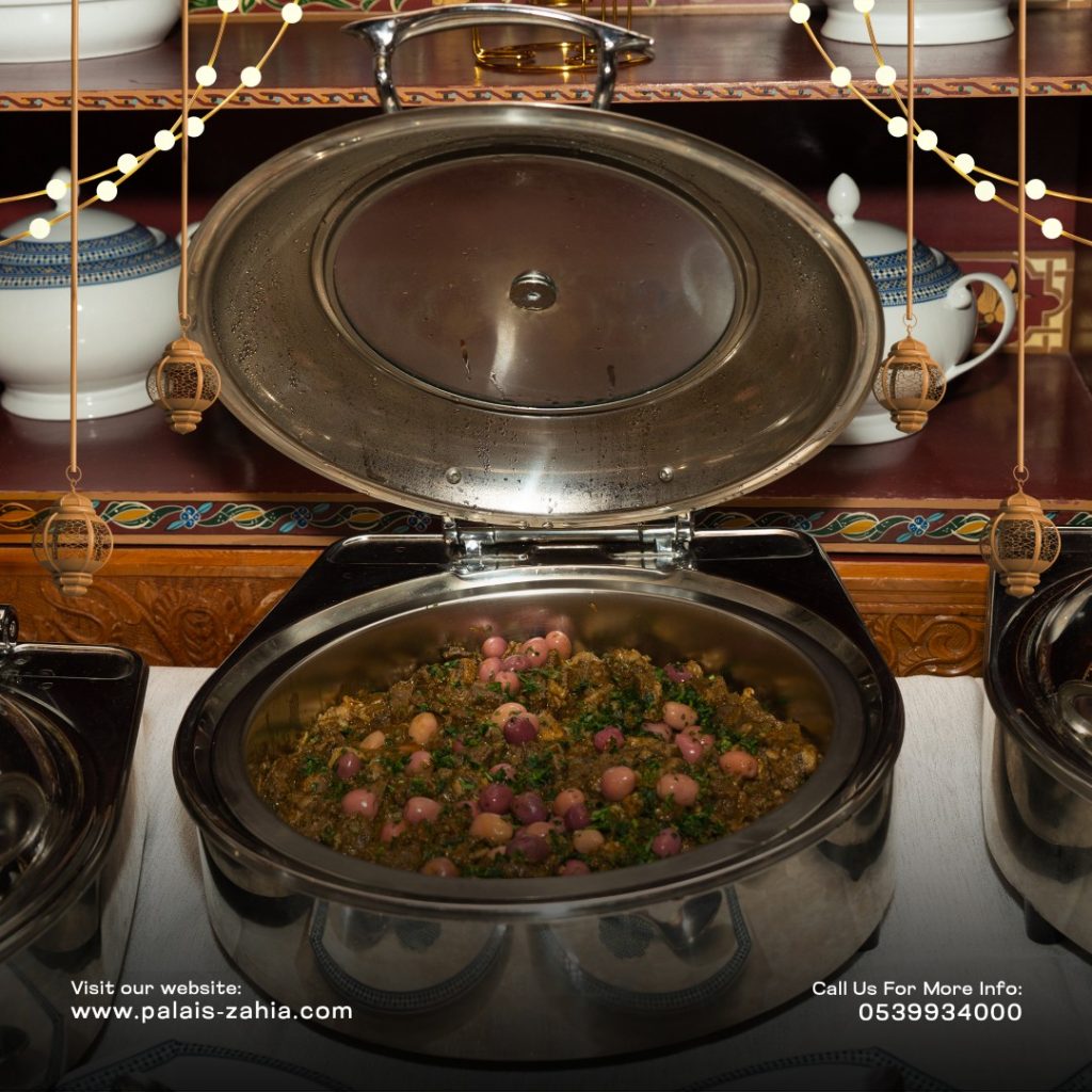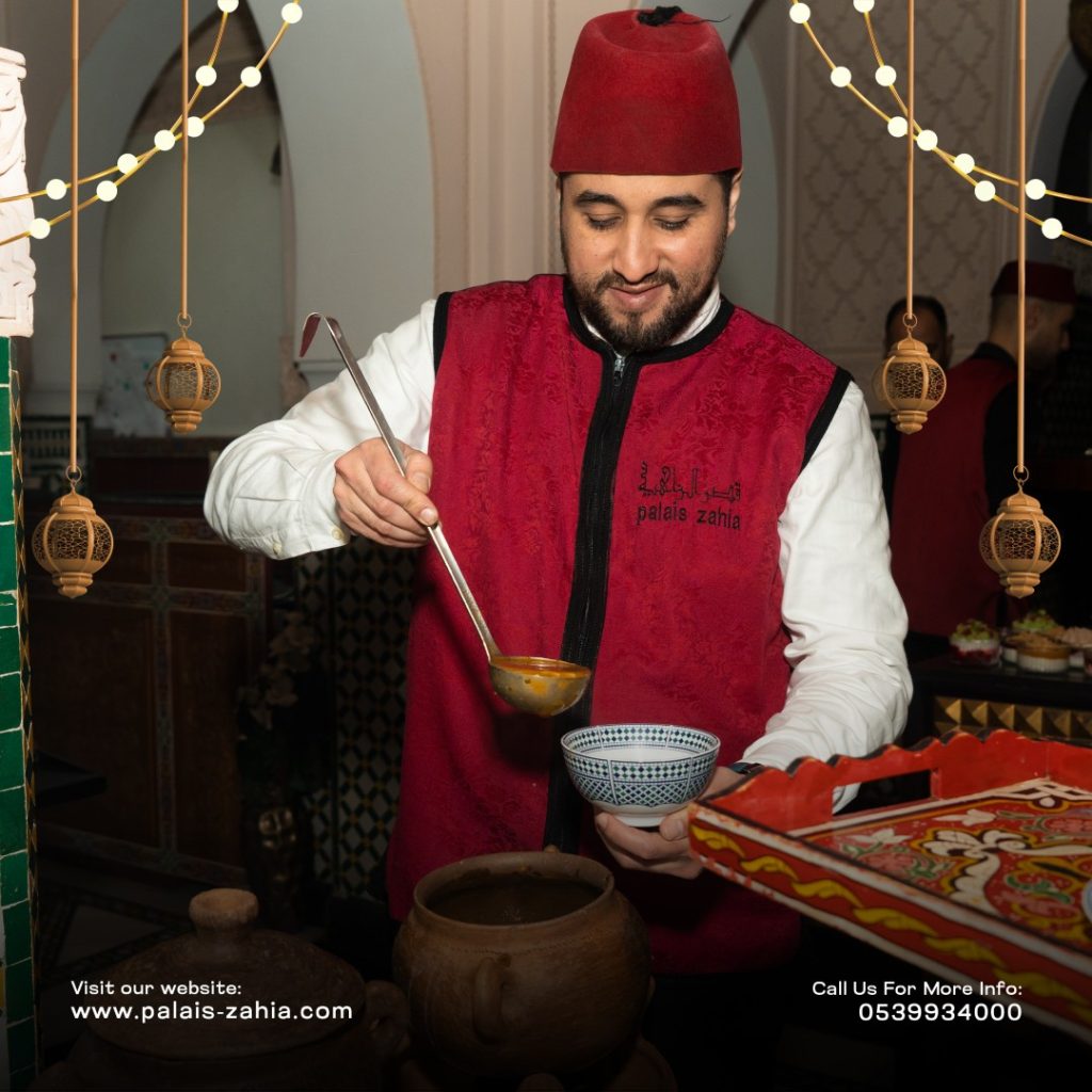 The Grand Moroccan Table at Palais Zahia in Tangier is a unique destination where Moroccan hospitality and the art of living are truly celebrated. At the time of breaking the fast, Palais Zahia invites you on a refined culinary journey across the different regions of the Kingdom. Each week during Ramadan, a different region is highlighted, showcasing the authentic flavors of Marrakech, Casablanca, Fez, and Tangier. The ftour menu features essential Ramadan favorites such as chebakia, msemens, eggs with khliî, and the famous briouates. Alongside these classics, you will discover signature regional dishes: beef or sea bream tangia inspired by Marrakech, chicken rfissa representing Casablanca, traditional fassi chicken and vegetable soup from Fez, and a flavorful northern-style fish ball tagine from Tangier. Each weekly ftour menu is carefully crafted by the chefs of Palais Zahia, honoring pure Moroccan culinary traditions while offering guests an elegant and memorable dining experience in the heart of Tangier.